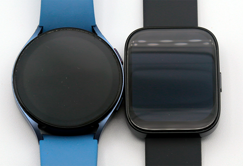 Ну и вот эти часы рядом с Samsung Galaxy Watch5: как видите, они никак не маленькие, размеры вполне сравнимы.