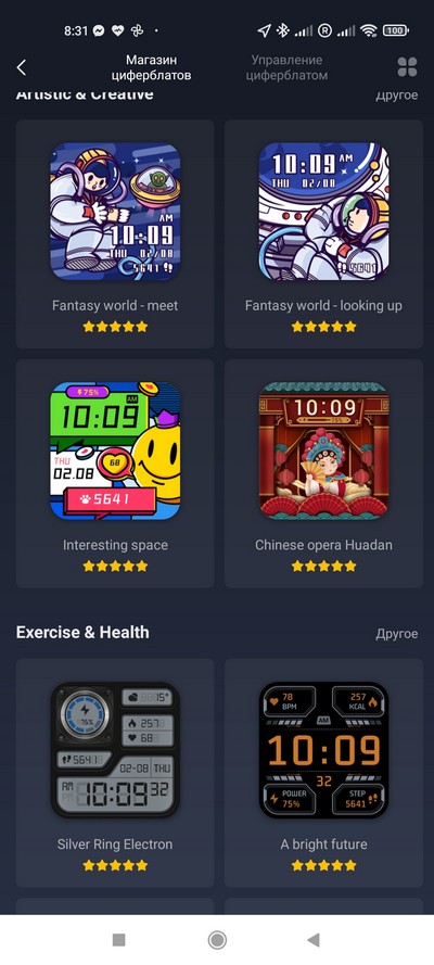 Как обычно у Amazfit, в разделе "Больше" скрывается еще несколько приложений: погода, вызов голосового помощника Alexa, музыкальный плеер, таймер, секундомер, Pomodoro Tracker (что-то типа медитации), мировые часы, компас, управление камерой смартфона и поиск смартфона.