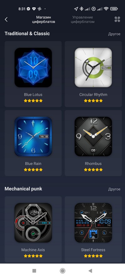 Магазин циферблатов. Система тут следующая. В часы помещается только четыре циферблата, причем два из них нельзя менять. В магазине циферблатов сейчас доступно порядка 50 циферблатов, но, чтобы какой-то из них закачать в часы, вы должны выбрать, какой один из двух закачанных в часы циферблатов заменит новый циферблат.