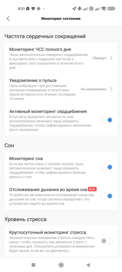 Мониторинг: сон, физическая активность, тренировки, сердечный ритм, оксигенация крови