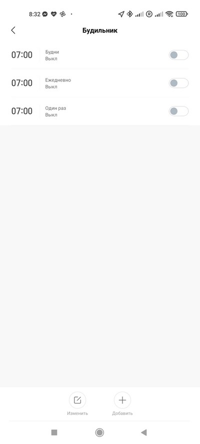 Управление списком приложений в часах, будильник.