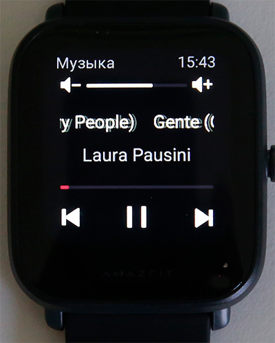 Свайп с циферблата влево-вправо - виджеты тех приложений, которые вы сами задаете: вот, например, управление музыкой со смартфона.