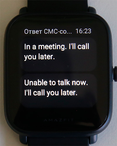 При этом я там с неимоверным удивлением обнаружил предложение сделать свайп вверх и ответить предустановленным сообщением в SMS (никогда такого не было в часах подобного уровня)