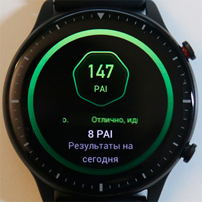 PAI (индекс активности), кольцо активности (темп, расход калорий, жиросжигание).