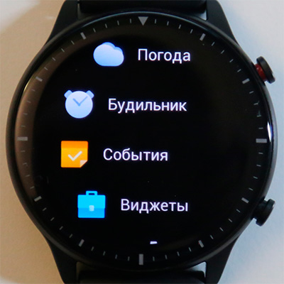 Возвращаемся к циферблату. Свайпом слева направо (или наоборот) переключаются виджеты.