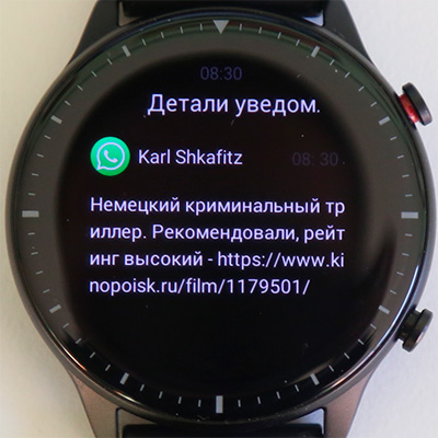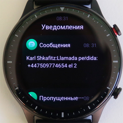 Однако со звонками здесь пока наблюдаются определенные странности. Если включена опция возможности приема звонка на часах, то уведомление приходит, но при приеме звонка на смартфоне, у того звук выводится через часы, что более чем странно: при этом приходится явно переключать вывод звука в телефонном приложении смартфона, что неудобно. А если выключить опцию возможности приема звонка на часах, то часы при этом и сам телефонный вызов перестают показывать, что тоже очень даже странно.