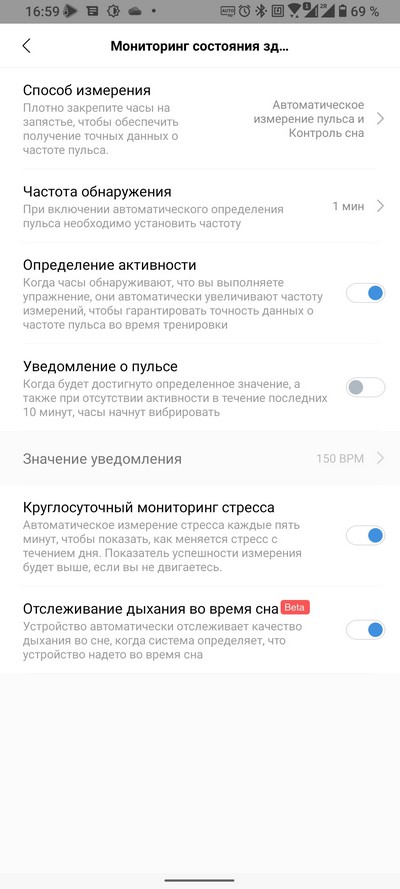 Очень важный момент: режим "Не беспокоить" можно настроить только здесь, в приложении на смартфоне он не настраивается, что создало для меня некоторые проблемы (я всегда сплю в часах). Только здесь можно выставить "умный режим" (уведомления вырубаются, когда смартфон в режиме "Не беспокоить") или включение режима "Не беспокоить" по расписанию, что мне и нужно.