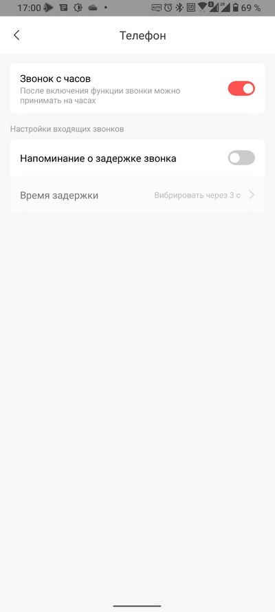 С помощью этой опции можно включить возможность приема звонков непосредственно на самих часах.