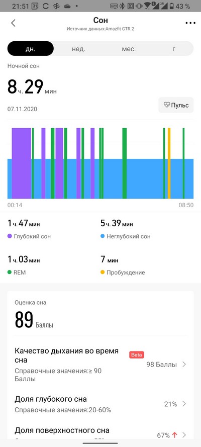 С автоподстройкой яркости, без режима постоянно включенного экрана, но с мониторингом сна, пульса и всего, чего только можно, часы, как и обещал производитель, жили до двух недель (ну, точнее, получалось что-то порядка 12 дней).