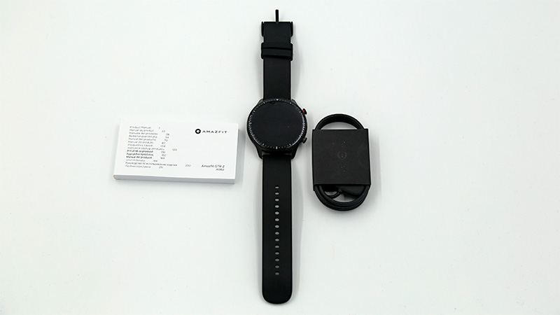 Комплект поставки: часы с ремешком, зарядное устройство, инструкция на нескольких языках, включая русский.