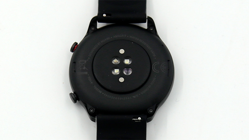 На нижней части часов расположены датчики (часы измеряют пульс, уровень оксигенации крови и уровень стресса) и два контакта для зарядки.