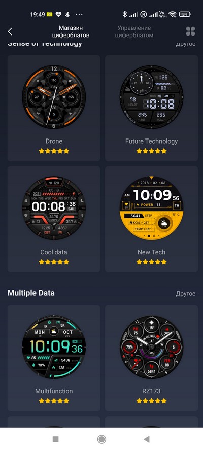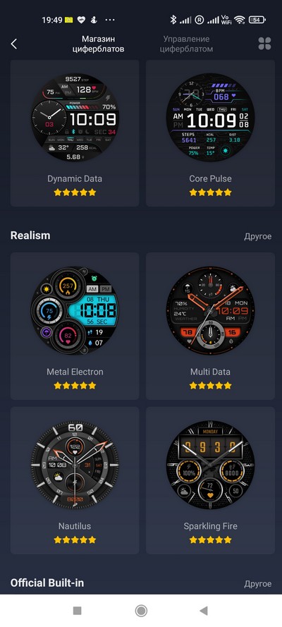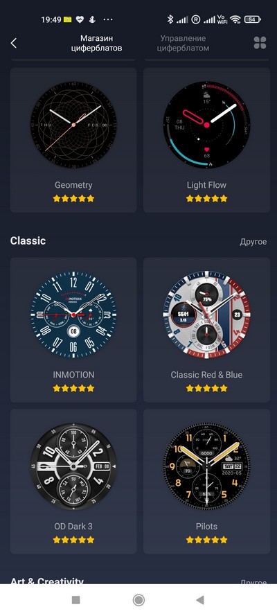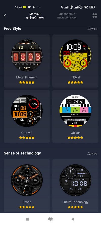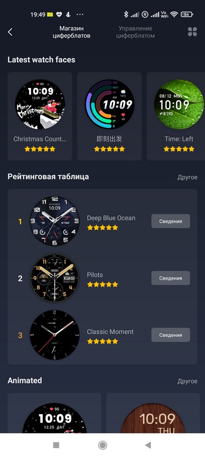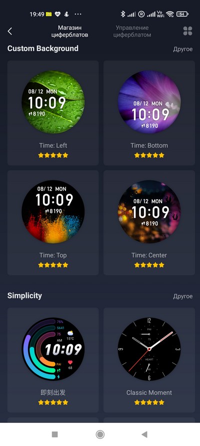 Циферблаты устанавливаются в приложении, и их выбор достаточно широк.