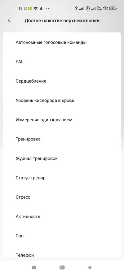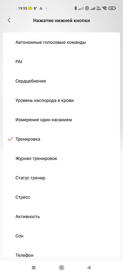 Тренировки - выбор вида тренировок (по умолчанию это вызывает нижняя кнопка, но ее можно переопределить).