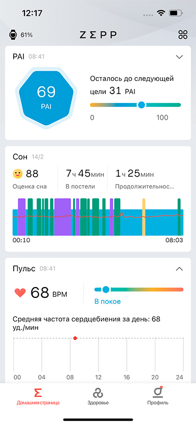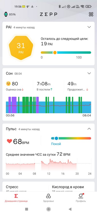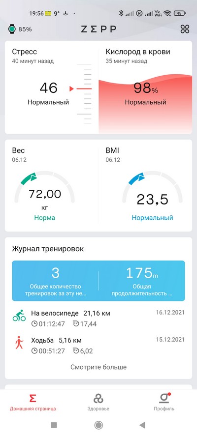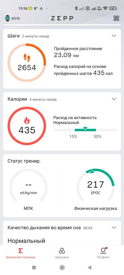 - приложение Zepp тоже слегка сыровато, функционал явно беднее, чем у "Huawei Здоровье", но тут есть надежда, что будет обновляться...