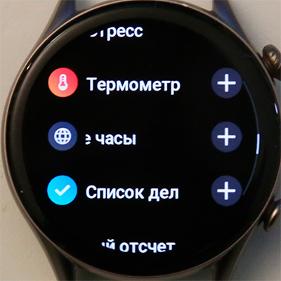 Настройки - настройки часов. Там можно задать режим постоянно включенного экрана. При этом можно задать что-нибудь из предустановленных циферблатов AOD, коих всего пять. Однако каждый обычный циферблат имеет свой вариант экрана AOD, и вы это можете менять на предустановленный.