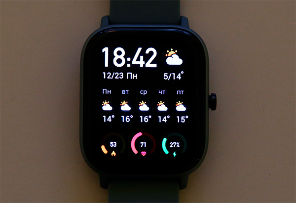 Дисплей радует со всех сторон: очень качественный, яркий, цвета насыщенные. При этом и на прямых солнечных лучах изображение более или менее различимо, хотя, конечно, с трансфлективным дисплеем Bip или Stratos не сравнить: те на прямом солнце выглядят лучше всего - вот, например, Amazfit Stratos