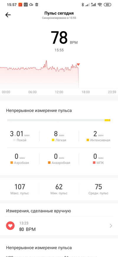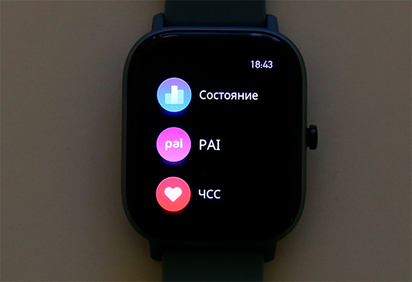 От циферблата свайпы влево-вправо - состояние и пульс.