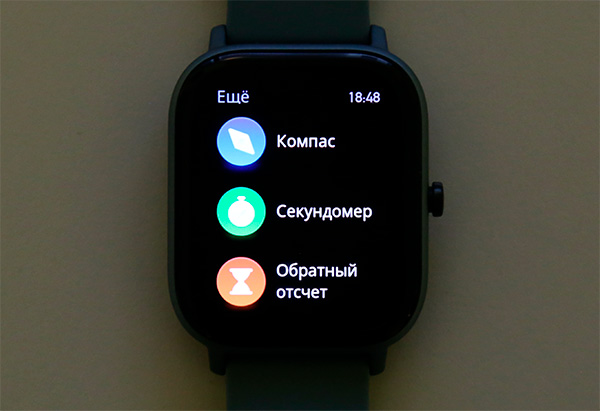 Раздел "Еще": компас, секундомер, обратный отсчет.