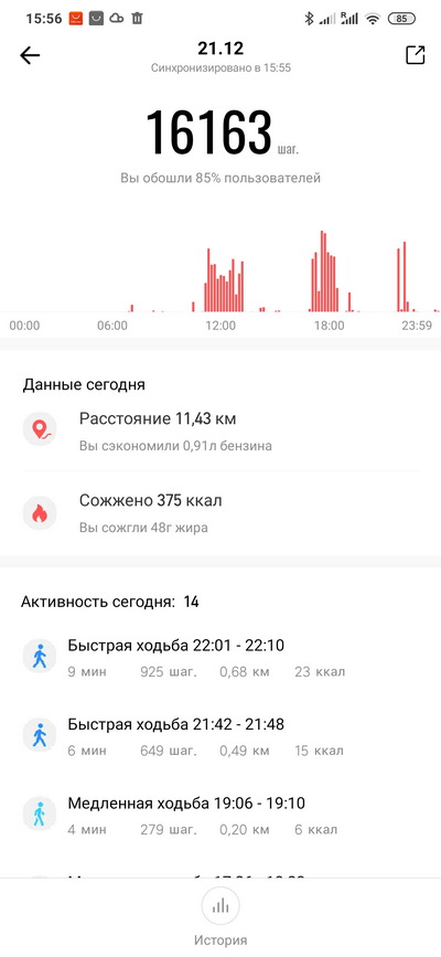 Каждый пункт можно открывать и получать подробную статистику за выбранный день.