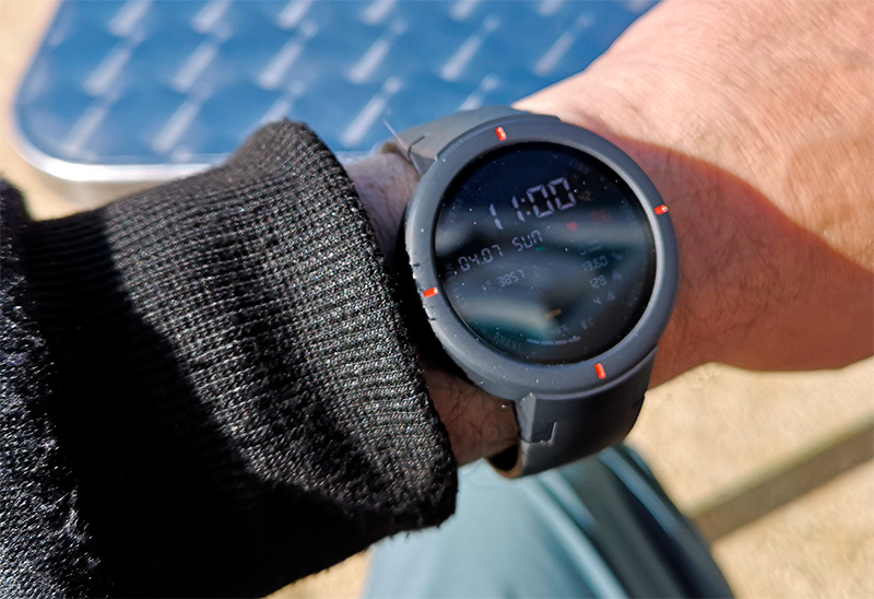 И я всегда считал, что Huami специализируется на "умных" часах с трансфлективными дисплеями, которые имеют невысокую яркость при неярком окружении, однако великолепно видны на прямых солнечных лучах и имеют в три - десять раз лучшую автономность по сравнению с AMOLED-дисплеями. (Трансфлективные дисплеи, например, используются во всех часах компании Garmin.)