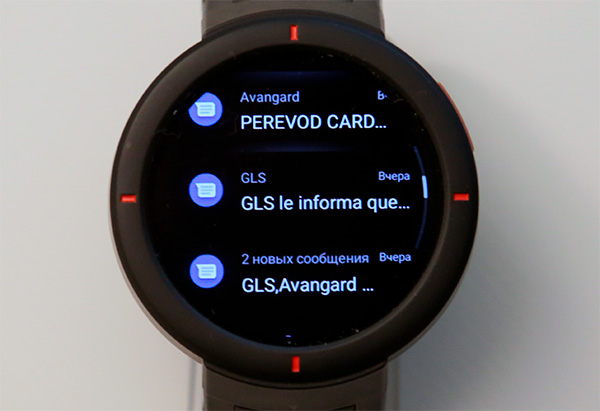 Отправляемся обратно к циферблату. От него свайп вниз - переход в список уведомлений. При нажатии на выбранное уведомление оно показывается целиком: его можно скроллировать. Замечу, что, как и на всех других часах Amazfit, отвечать на уведомление нельзя. Но можно просматривать и удалять.