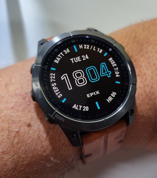 На фото ниже яркость экрана Fenix 7 выставлена на полную, а по умолчанию она выставляется на 20% (чтобы не сажать батарею), и яркость при этом значительно ниже.