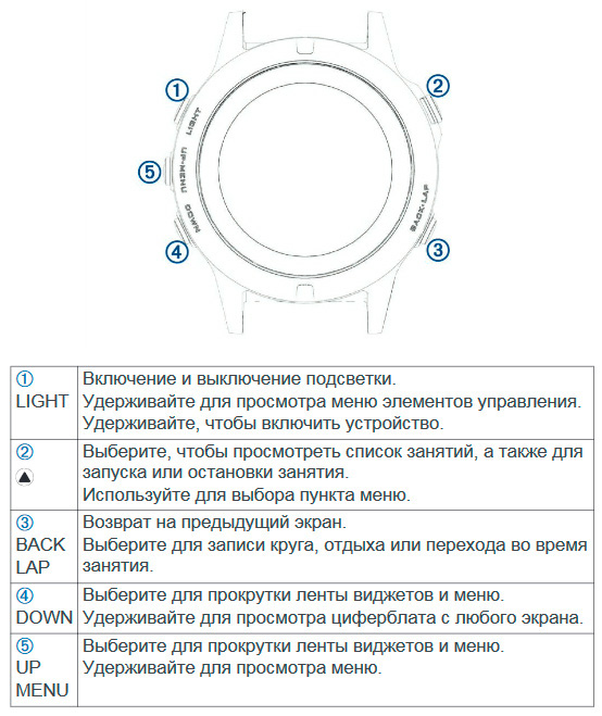 Вообще надо сказать, что у часов Garmin управление достаточно замороченное. Для тех пользователей, которые часы держат в руках в первый раз, а до этого использовали часы на Tizen, Android Wear или Huawei Lite OS, разобраться в управлении часов Garmin будет не очень просто, но там нужно понять внутреннюю логику, после чего проблем с этим не будет, привыкнуть можно. Хотя лично я считаю, что управление можно было сделать проще, и имеющаяся схема не слишком, так сказать, user friendly. Но давайте разбираться.