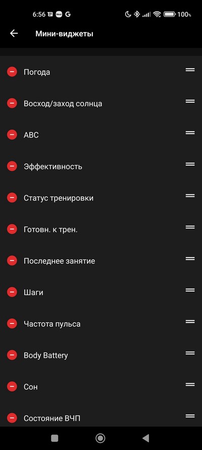 Там же в конце списка пиктограмма настройки виджетов, где можно убирать одни и добавлять другие (в приложении это также делается).