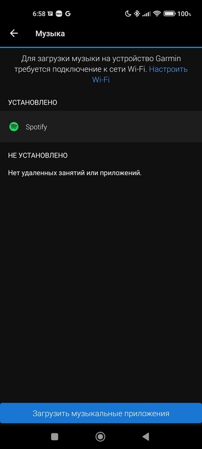 В разделе "Музыка" можно выбирать источник музыки (потоковый сервис, память часов, куда музыка загружается через Garmin Express на ПК), также можно подключать Bluetooth-наушники и управлять воспроизведением на смартфоне.