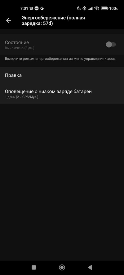 Производитель говорит о 18 днях автономности без учета подпитки солнечной энергией, и о 57 днях автономности в энергосберегающем режиме. Я все эти энергосберегающие режимы никогда не тестирую: я не вижу смысла покупать умные часы и отключать у них все функции мониторинга во имя увеличения времени автономной работы. Но, впрочем, тут есть возможность включать режим энергосбережения во время сна, а это как раз полезная возможность.