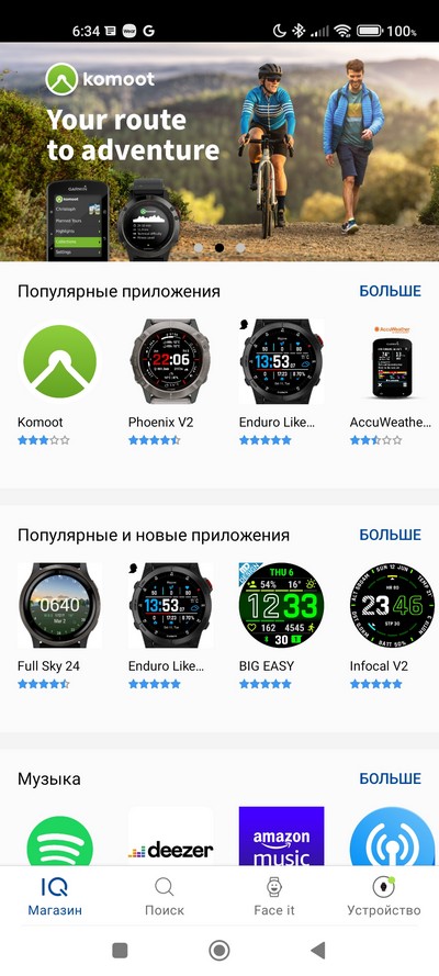 поддержка приложения Komoot для треккинга и активного отдыха;