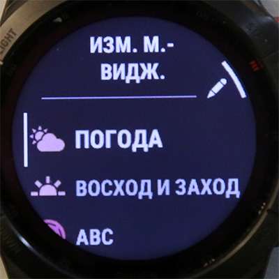 Выбор из предустановленных циферблатов. Новые циферблаты можно устанавливать через приложение Connect IQ Store, где их великое множество, и они очень гибко настраиваются.