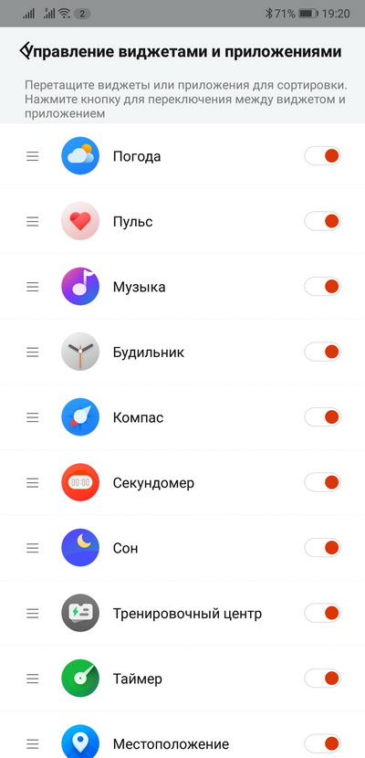 Настройка виджетов и приложений, ненужные можно отключить, можно менять порядок.