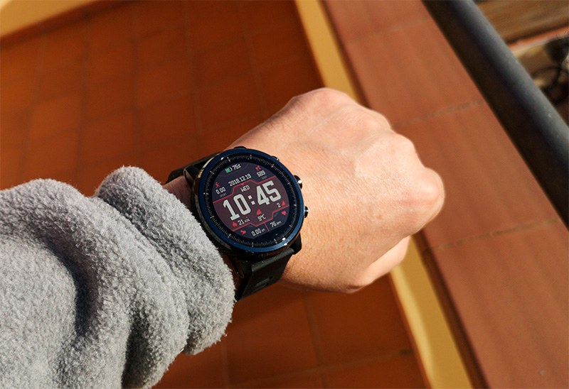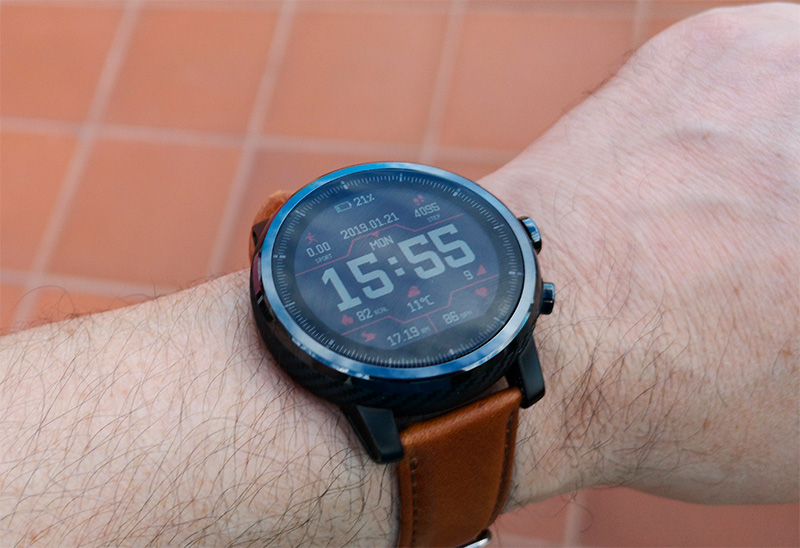Как и у других моделей Amazfit, здесь используется цветной трансфлективный (также его называют рефлективным) дисплей, который никогда не выключается и при этом демонстрирует очень хорошую автономность.