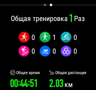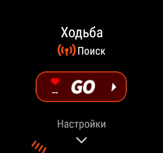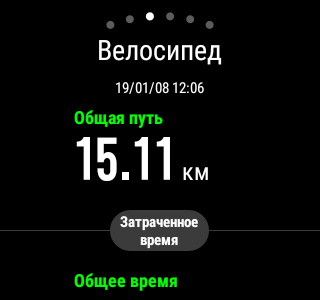 Теперь давайте посмотрим, как работает режим тренировки. Запускаем активность - например, ходьбу. Или велосипед.