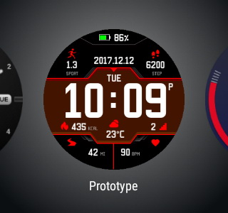 Дисплей: 1,34" в диаметре, 320×300, сенсорный, трансфлективный, закаленное стекло 2,5D