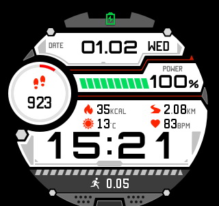 Два - Если у бипов включить фэйс с секундной стрелкой или цифровыми секундами - расход резко возрастает, но опять же - из-за разницы в разрешении экранов прогрессия не такая мощная, как на стратосе. И квадратный экран бипов располагает к цифровым циферблатам, которые в основном без секунд, в отличии от круглых стратосов, чей четкий экран так и манит установить аналоговый фэйс с прыгающей секундной стрелкой.
