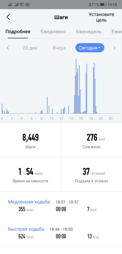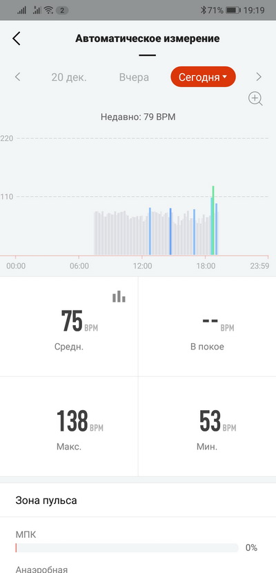- пульс, по сути, не измеряют: значения далеки от реальности, как не знаю что, а ругаться не хочется. Чисто теоретически можно признать, что в состоянии покоя более-менее верно. Вчера бегал на дорожке, пульс многократно и надолго был 140-150. В приложении показывает max.105;