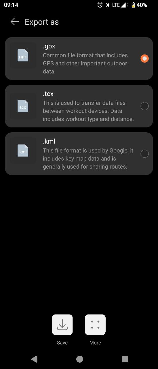 А есть ли у них экспорт маршрута тренировки и в каких форматах? И работает ли он? Столкнулся с тем, что у Amazfit GTR 3 по факту работает экспорт только в gpx. В другие форматы либо выгружается пустой файл либо не выгружается вовсе. A gpx не хранит данные о скорости.