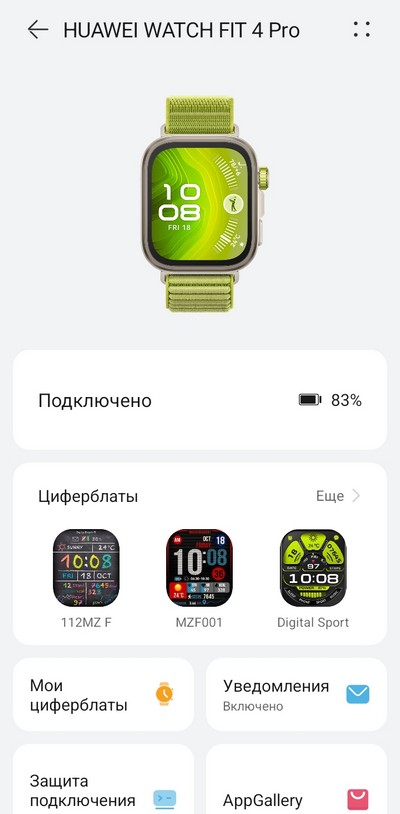 Huawei Watch FIT 4 Pro умеют делать скриншоты (одновременное нажатие двух кнопок, снимок отправляется в галерею смартфона), поэтому я буду показывать скриншоты, а не фото экрана, что на порядок удобнее и качественнее.