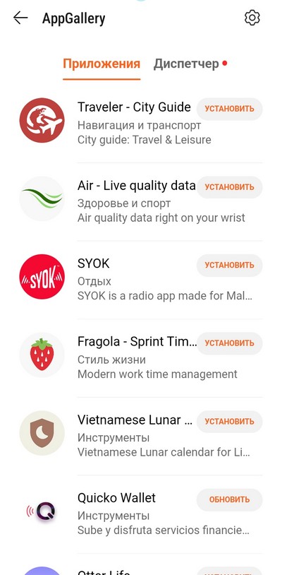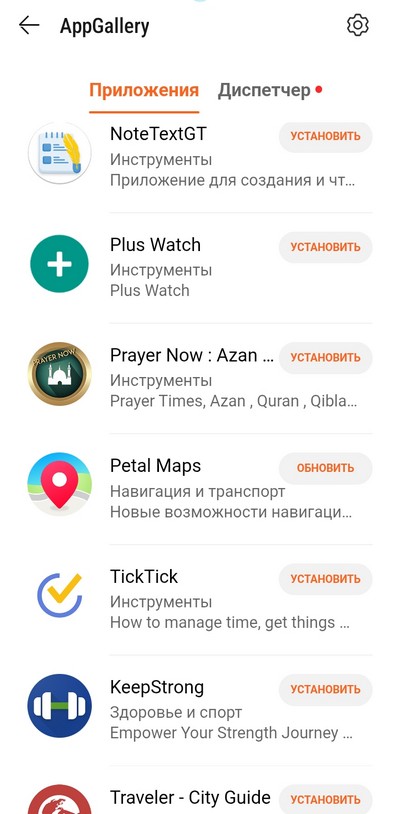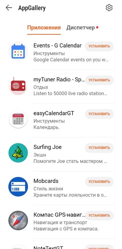 Также среди приложений - те, которые можно устанавливать из магазина приложений Huawei.