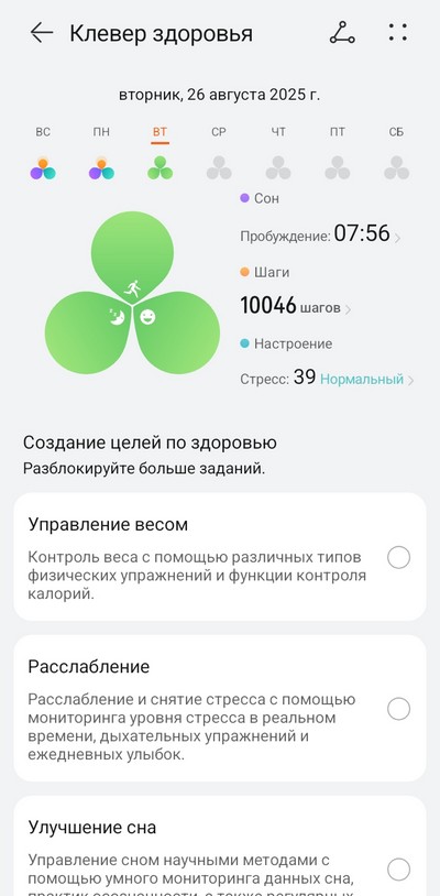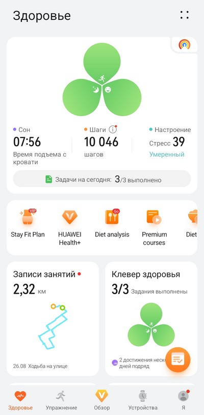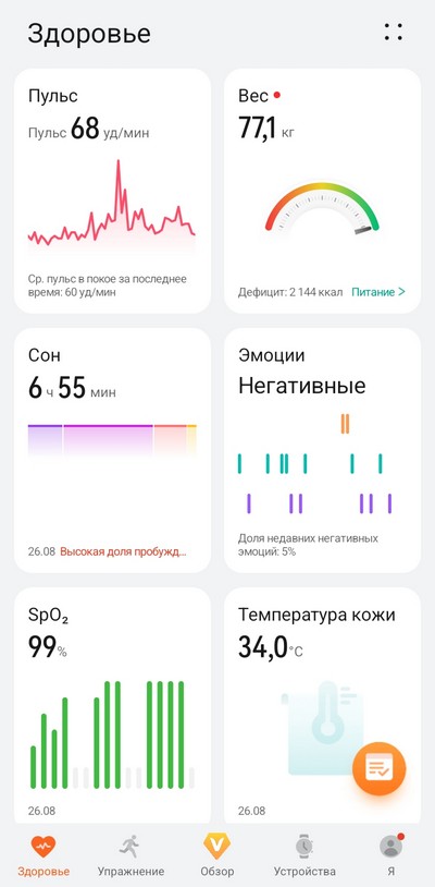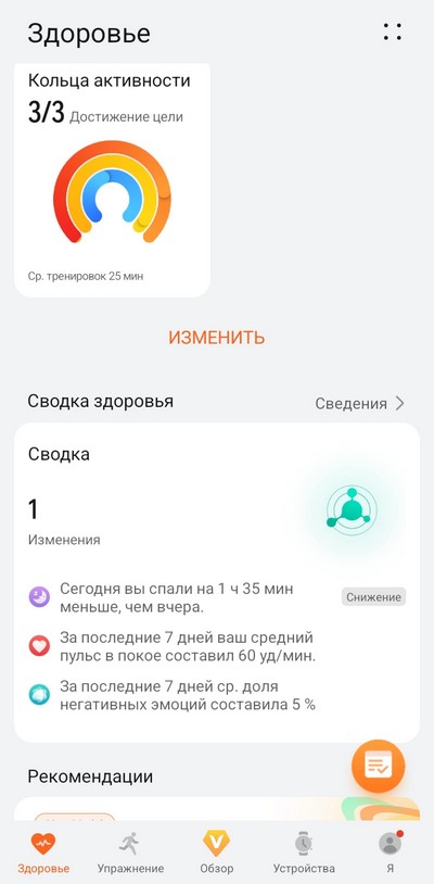 Также здесь есть приложения "Будь в форме" и "Сводка здоровья", которые дают комплексную оценку состояния здоровья.