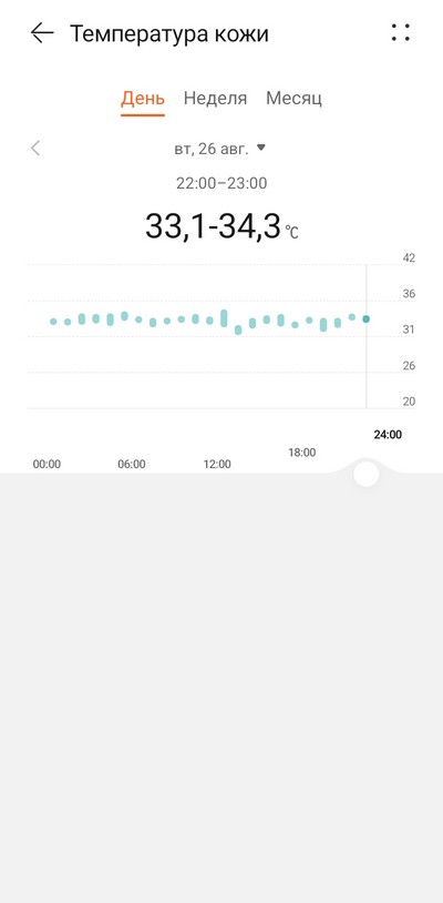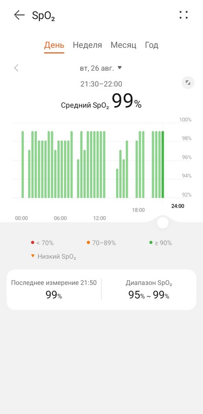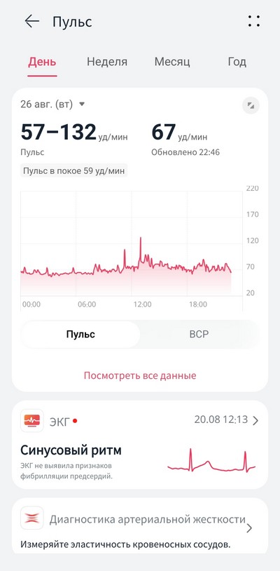 а вот если посмотреть в историю за сутки ,то можно увидеть отклонения в сердечном ритме что является более интересным на мой взгляд.