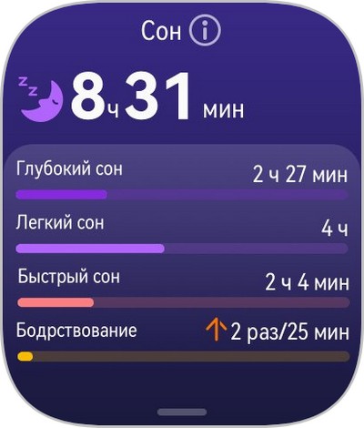 Многие виджеты/приложения могут выдавать очень подробную информацию. Вот, например, приложение "Сон", которое включено в эту карусель виджетов.