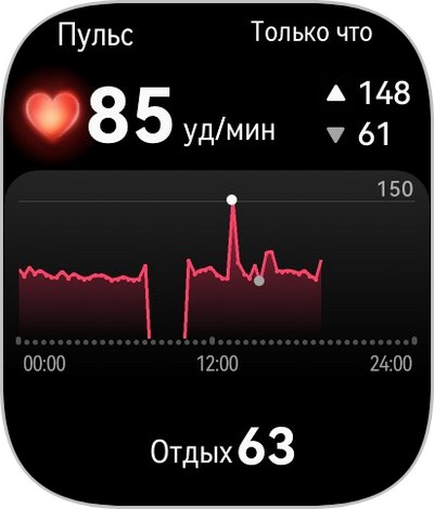 Измерение ЭКГ на часах (это может выявить признаки фибрилляции предсердий): для этого нужно приложить палец к электроду. Измерение длится 30 секунд.