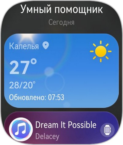 Виджет "Умный помощник".  Я там, кроме информера погоды и аудиоплеера, ничего не видел.
