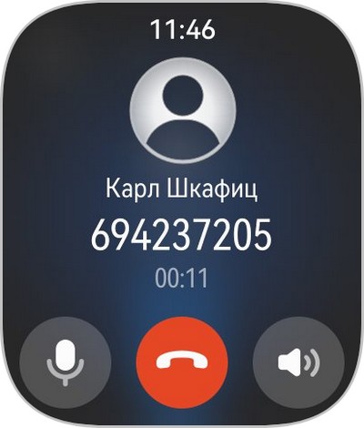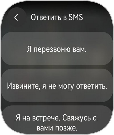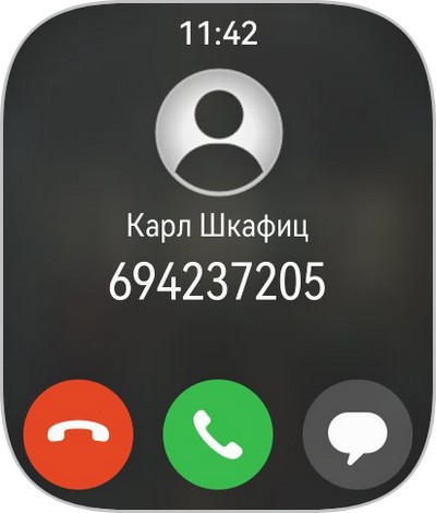 Входящий звонок. Можно ответить прямо с часов, можно сбросить звонок или ответить на него предустановленным ответом через SMS.