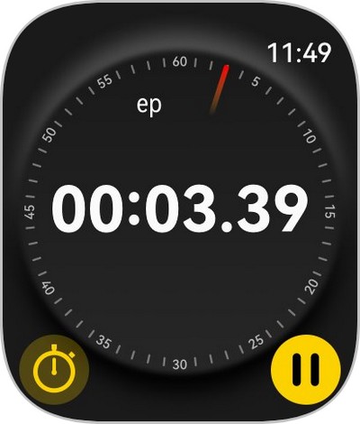Секундомер. Он здесь правильный - в том смысле, что когда вы запускаете секундомер, то если вы сами не возвращаетесь к циферблату, то секундомер работает на переднем плане и экран не гаснет. Если же вы переходите к циферблату, то там соответствующим значком показывается запущенное в фоне приложение, по нему можно щелкнуть - и перейти на него.