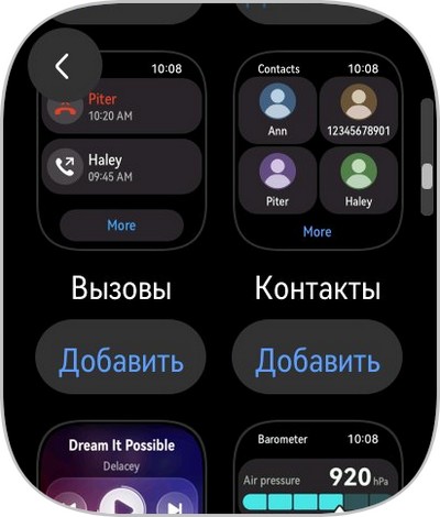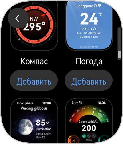 Настройки карточек-виджетов, которые появляются справа от циферблата.