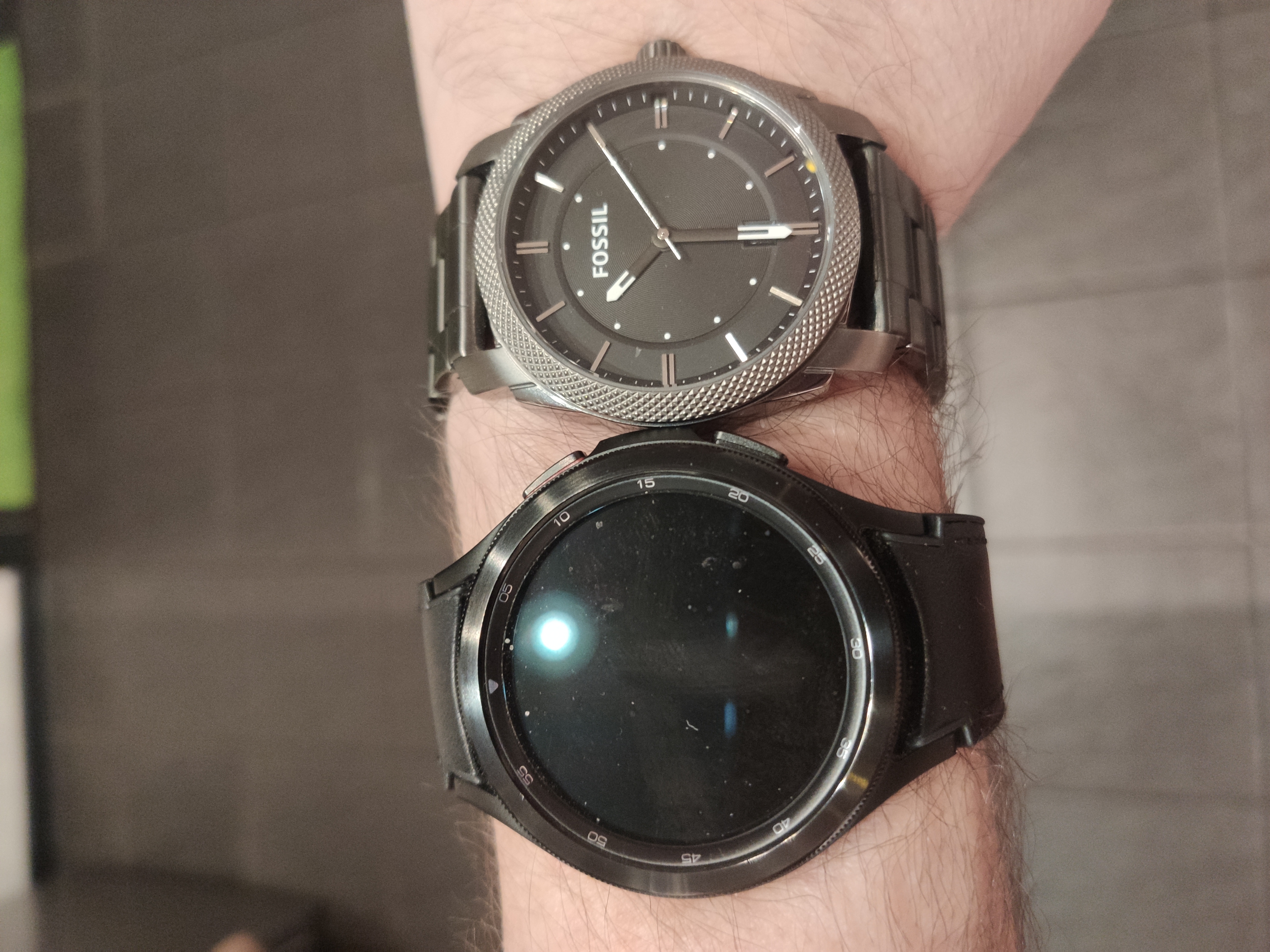 Ну руке часы сидят хорошо, для узкого запястья (а у меня узкое запястье) могут показаться слегка громоздкими, но меня такой размер вполне устраивает.